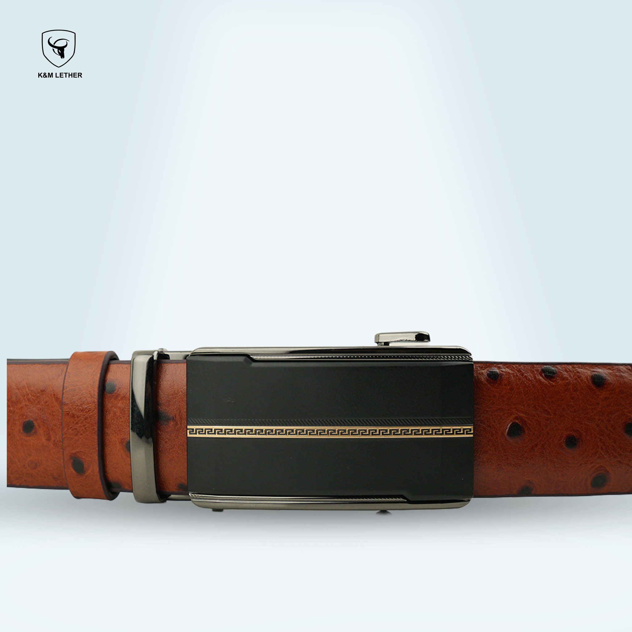 Make a bold style statement with this Premium Ostrich Pattern Leather Belt, crafted from original cow leather and finished with a distinctive ostrich-inspired texture. The rich leather surface delivers a luxurious look while maintaining durability and everyday comfort.