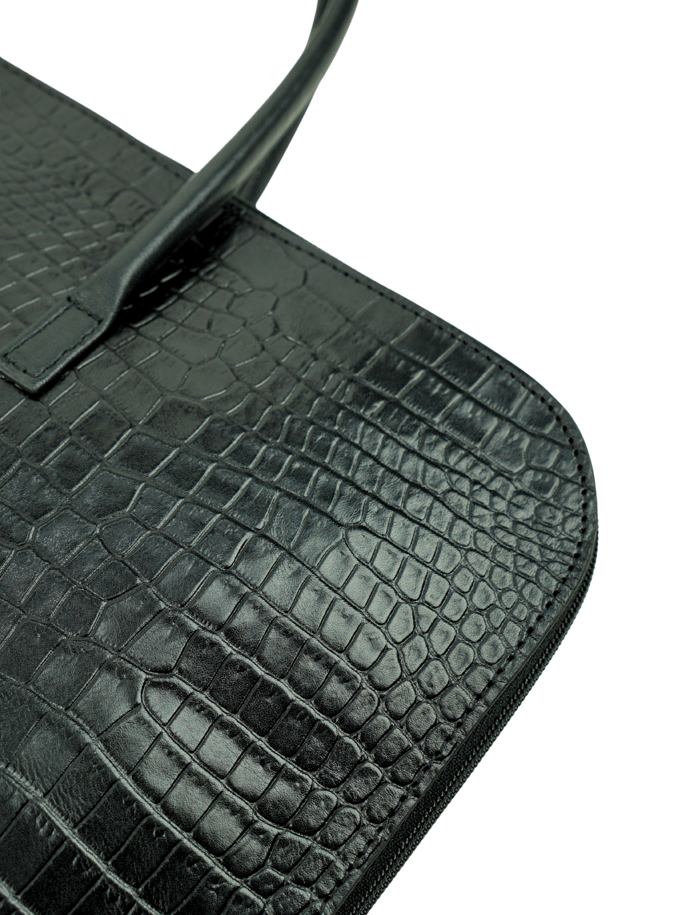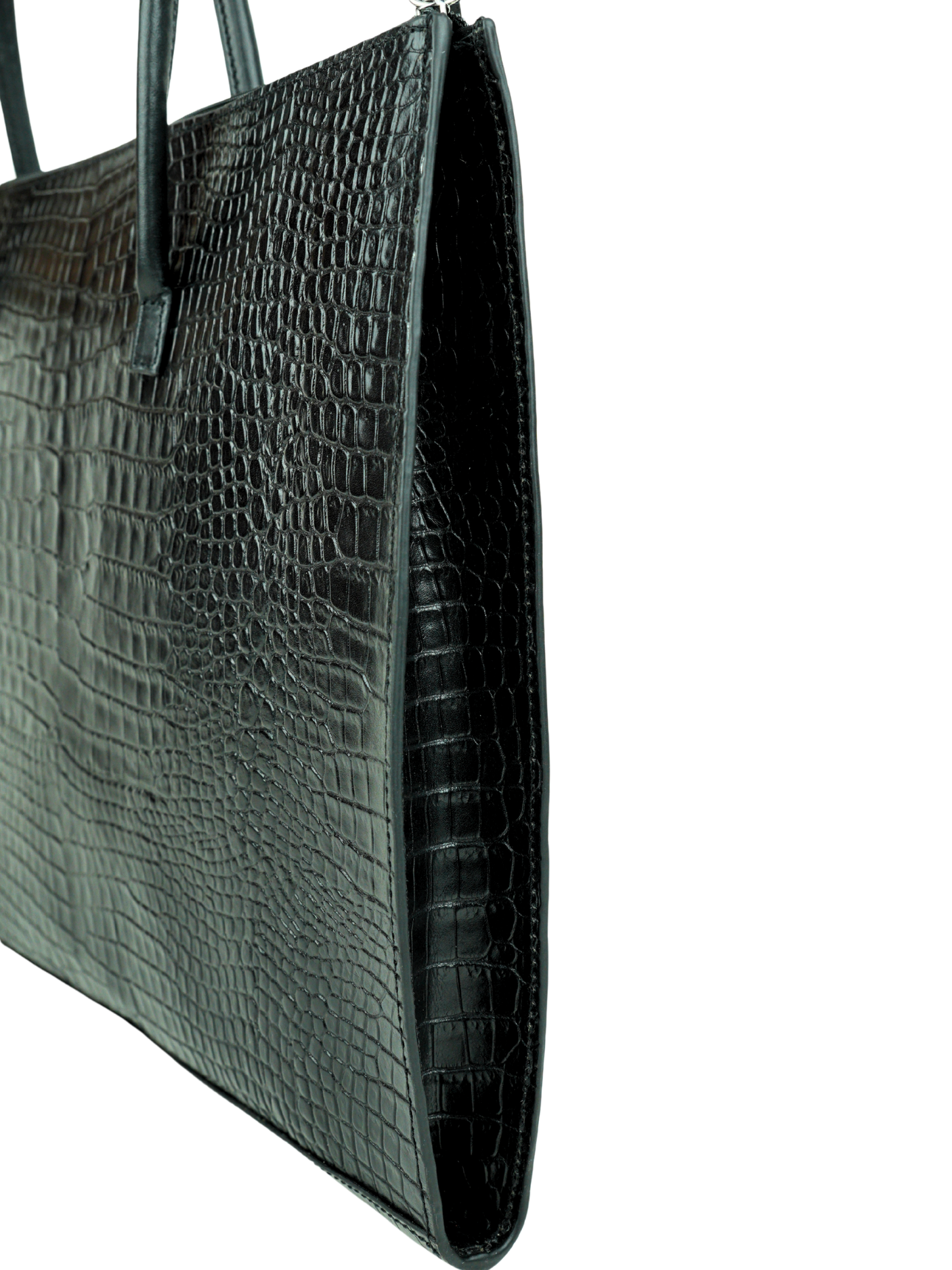 - Color: Classic black with embossed crocodile pattern