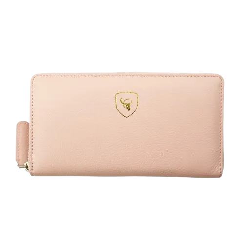 The pebbled leather texture not only enhances its premium look but also resists scratches, making it ideal for daily use. Finished with a subtle gold logo embossing and smooth silver-tone zipper, this purse blends functionality with timeless elegance.